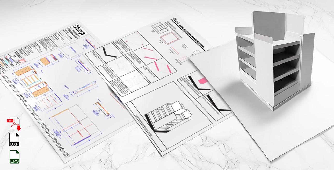 Upon downloading a design, you will receive a PDF of the dieline for immediate pricing, an EPS file for artwork, and a DXF file for prototyping. Assembly instructions are also included where applicable.